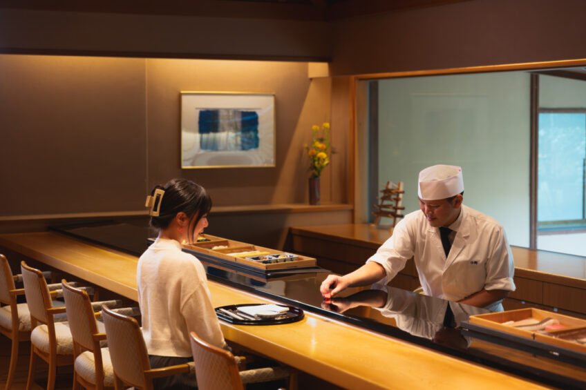 And if you’re not a breakfast person, don’t worry. You can still soak up the garden atmosphere by booking a spot at Tachibana, the hotel’s intimate sushi restaurant. With only a handful of seats at the counter, it feels like dinner and theatre combined – each slice, brush, and placement of fish choreographed to match your pace, making every bite feel like a performance made just for you.